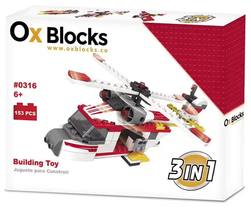 Empaque de regalo sin costo adicional, escríbenos al finalizar la compra. 6 años + Increíble Set de bloques tipo lego para Construir 153 piezas. Los niños se divertirán armando un helicoptero, una lancha rápida y una avioneta. Cada ficha está diseñada y fabricada para un encaje perfecto entre si, ofreciendo solidez en cada construcción. Promueve el desarrollo social y cognitivo de los niños mientras que trabaja la coordinación y las destrezas motoras gruesas y finas. Los niños aprenden a usar su imaginación y a desarrollar sus destrezas creativas mientras trabajan con otros niños. Los juguetes de construcción les ayuda en su coordinación, concentración y en su relación con los otros objetos. Con los juguetes tipo Lego creamos las condiciones para que los niños aprendan a compartir y a negociar el espacio y los materiales. Los beneficio son infinitos, incluyendo conciencia espacial, conocimientos matemáticos, habilidades de razonamiento, concentración y creatividad.