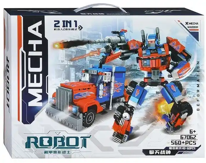 Lego Robot Trasforme carro dos en uno de 560 Piezas Lego Prepárate para la aventura definitiva con el emocionante set de construcción 2en1, Con 560 piezas de mini bloques, este increíble kit te permite construir un camión transformers espectacular a Un gran Robot ¿Estás listo para desafiar tu creatividad y habilidades de construcción? ¡Entonces este set es para ti! Convierte tus sueños en realidad mientras ensamblas cada pieza, paso a paso, para dar vida a un camión transformers único y fascinante. Medidas: 48x35cm caja