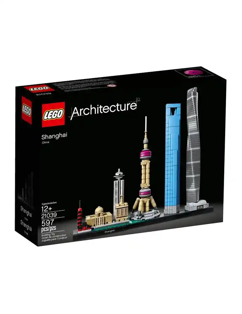 Lego Arquitectura Shanghai Ref. 21039 Recrea la combinación de arquitectura histórica y moderna de Shanghái en China con este modelo realista LEGO® Architecture 21039 Shanghai Skyline Collection. Este juguete coleccionable de ladrillos LEGO presenta los puntos de interés icónicos de la ciudad, incluidos el templo Chenghuang Miao, el templo y la pagoda de Longhua, el hotel Radisson Blu, el área del Bund, la Perla Oriental, el World Financial Center, la Torre de Shanghái y el río Huangpu, y tiene un acabado decorativo. Placa de identificación de Shanghái. La colección LEGO Architecture Skyline ofrece modelos adecuados para exhibir en el hogar y la oficina, y se ha desarrollado para todos los interesados en los viajes, la cultura arquitectónica, la historia y el diseño. Cada conjunto está escalado para dar una representación precisa del tamaño comparativo de cada estructura, con una representación de color realista.