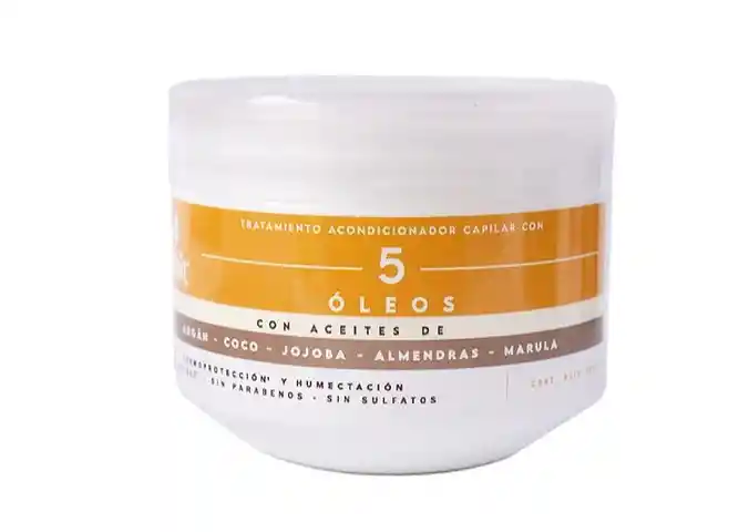 Tratamiento Capilar 5 Óleos de Lehit x 300 mL. Tratamiento capilar premium 5 óleos , el cual es un producto super hidratante y termoprotector, que gracias a su fórmula magistral que en un sólo producto brinda nutrición capilar cutánea y subcutánea con resultados únicos de: 1. Reparación extrema - Hidratación y perfecta lubricación capilar. 2. Sellamiento de cutícula. 3. Estimulación del crecimiento de cabello. 4. Reparación de puntas – Sedosidad, luminosidad y brillo especial.