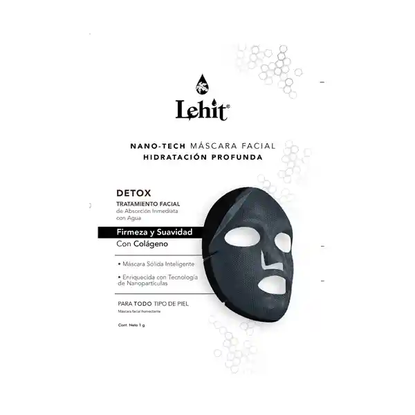 Máscara Facial Nano-Tech. Con Colágeno. Hidratación Profunda. Tratamiento Facial de Absorción inmediata con Agua. Detox, Firmeza y Suavidad. Enriquecida con Tecnología de Nanopartículas. Para todo tipo de Piel