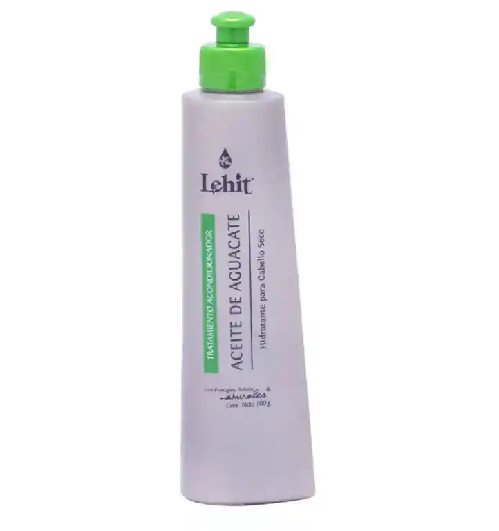 Tratamiento Aceite de Aguacate Acondicionador Lehit. Las reconocidas propiedades nutritivas del Aceite de Aguacate y su alto contenido vitamínico y proteínico lo convierten en el ingrediente ideal para tratar efectivamente el cabello, ya que actúa como un regenerador y reestructurador de la epidermis al estimular el cuero cabelludo. Sus excelentes propiedades emolientes e hidratantes, así como su fácil absorción, permiten mantener el cabello nutrido y con los niveles de humedad requeridos para evitar la resequedad y mantener el brillo y suavidad natural.