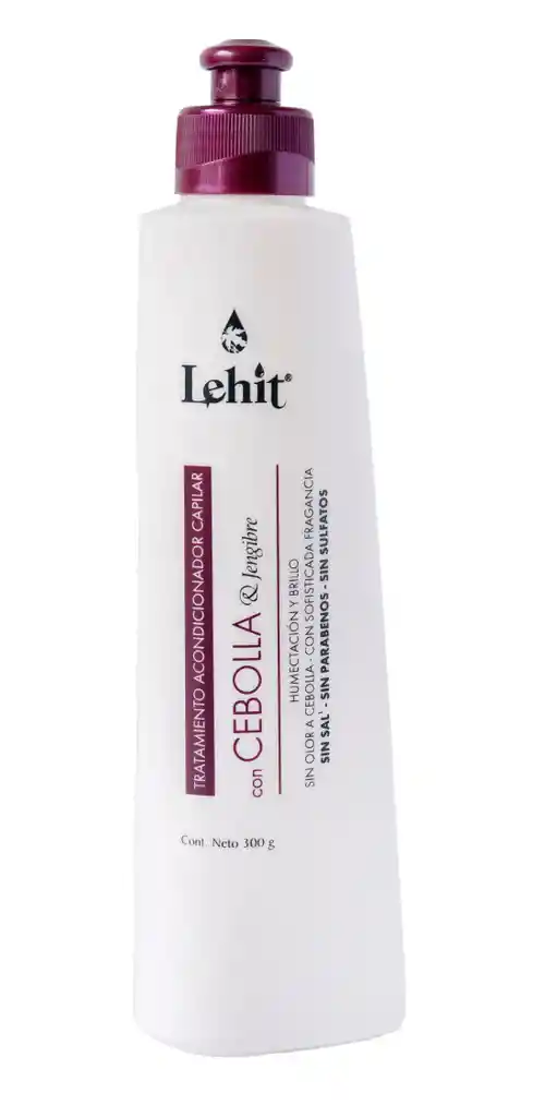 LEHIT TRATAMIENTO CON CEBOLLA Y JENGIBRE 300 ML LIBRE DE PARABENOS: Dúo natural nutrí-proteínico con excelentes resultados gracias a su contenido con bondades que repotencializan y vigorizan la fibra. Estimula la actividad exfoliante favoreciendo la eliminación de células muertas. Facilita y promueve el crecimiento del cabello y evita su caída. Permite mantener el colágeno y la queratina en buen estado y por su efecto antioxidante actúa como tratamiento anti-edad.