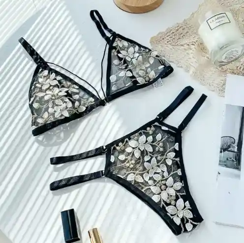 Descubre la perfecta combinación de elegancia y sensualidad con nuestra Lencería Bordada en Negro con Flores. Este conjunto, meticulosamente confeccionado, presenta delicados bordados florales que aportan un toque sofisticado y seductor. Fabricada con materiales de alta calidad, esta lencería es tanto hermosa como cómoda, asegurándote sentir segura y encantadora en cada ocasión especial.