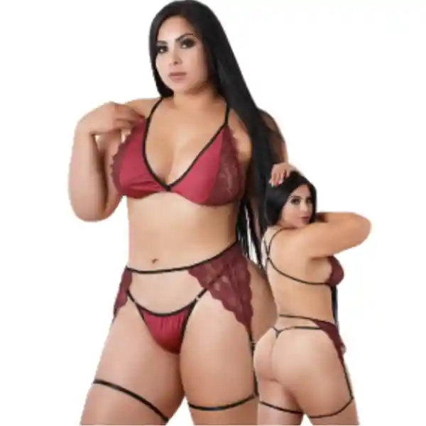 1 Panty 1 Sostén 1 Par de ligueros Tela tipo encaje Talla M - L -XL