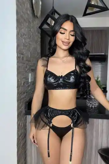 Conjunto de lenceria en cuerina color negro