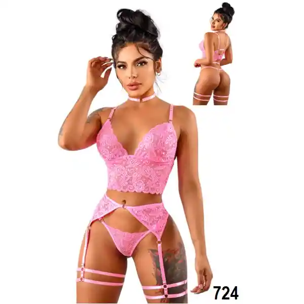 Lenceria Dulce y Sensual En nuestra tienda podrás encontrar una amplia gama de colores seleccionados para los gustos más finos, entre ellos hoy hablaremos del color rosado, el cual te dará una apariencia dulce, coqueta, sensual y sobretodo muy tierna, haciendote perder muchos años con una apariencia algo angelical. Caracteristicas de la Lenceria Rosa 724 Cuenta con un top, ligueros y tanga en encaje, con un pequeño sutil y hermoso collar en tiras. Como cuidar tus prendas Se recomienda lavar a mano y con delicadeza pues su material necesita de un cuidado especial para preservar su buen estado; también se puede lavar en lavadora, pero únicamente con el modo de lavado extra suave o malla Por ello a lo anterior se recomienda, no planchar, secar a la sombra y usar jabón suave para su lavado Confidencialidad: Tus pedidos se envían en una caja o sobre totalmente sellado y opaco sin ningún tipo de marcas externas. Para nosotros es muy importante tu privacidad.