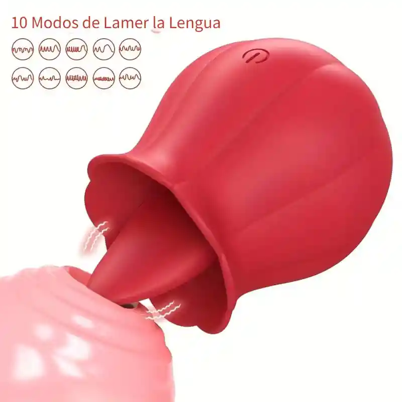 Rosa Simulada Lenga Vibrador. 10 Tipos de Modos de Vibración. Material Silicona + ABS