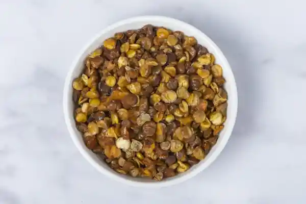 Lentejas sofritas en aceite de oliva y paprika.Cantidad 25g.