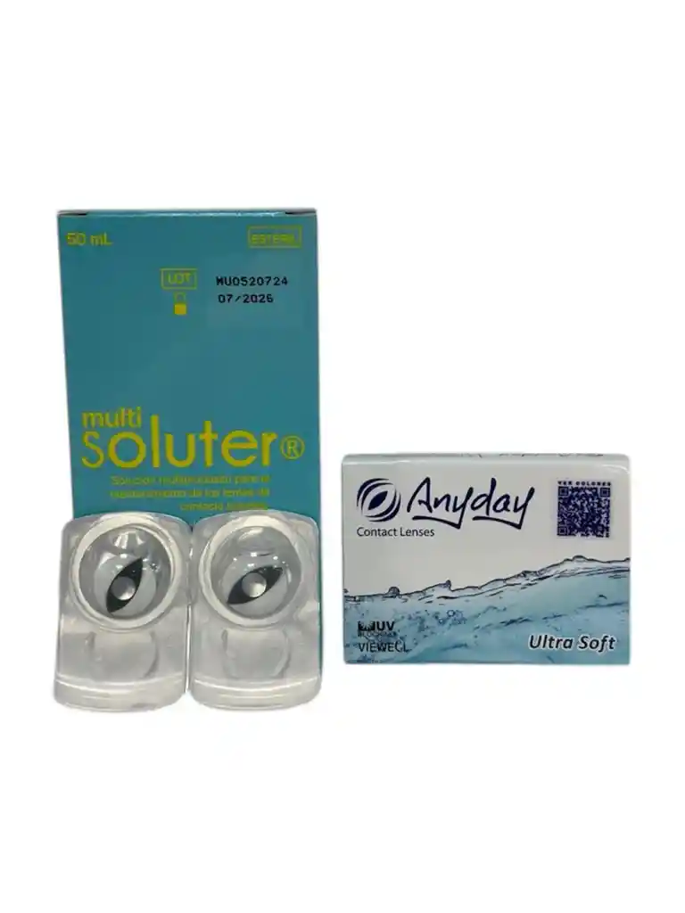 Lentes de contacto Anyday blancos gato + liquido Multi Solution 50 ml + estuche de lentes