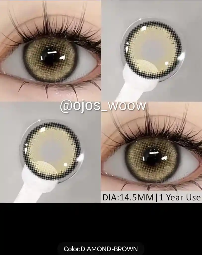 Lentes de contacto efecto natural para maquillaje, ocasiones especiales o uso diario Cosméticos, no medicinales Tono DIAMOND BROWN Marca EYESHARE Durabilidad de 6 meses a un año Diámetro 14.5mm Eleva tu belleza y enamora a primera vista. Mereces tener unos ojos woow. Incluye un par de lentes y portalentes