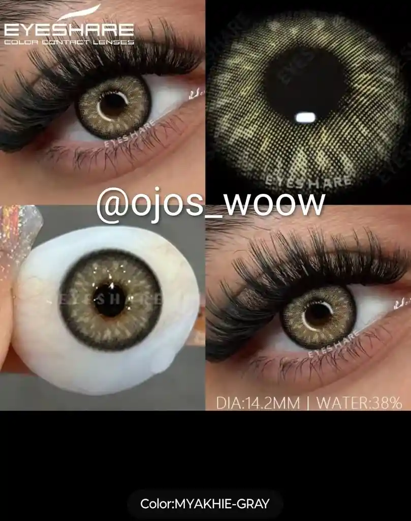 Lentes de contacto efecto natural para maquillaje, ocasiones especiales o uso diario Cosméticos, no medicinales Tono MYAKHIE GRAY Marca EYESHARE Durabilidad de 6 meses a un año Diámetro 14.2mm Eleva tu belleza y enamora a primera vista. Mereces tener unos ojos woow. Incluye un par de lentes y portalentes