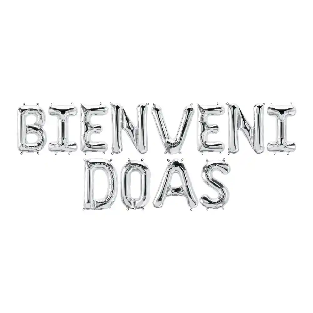 Cada paquete trae para formar el mensaje, bienvenido, bienvenida, bienvenidos, bienvenidas Tamaño: 30 cm de alto c/u Material: foil