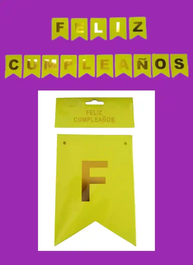 Descripción Banderín Guirnalda Feliz Cumpleaños Amarillo Fluorescente con letras Doradas. Colores Flúor Neón para fiestas Temáticas, Hora Loca... Los colores BRILLAN ante la exposición de luz ultravioleta. Cada Letra es de una medida de 17 x 12cms y una cinta de 3mts. -Materia: Cartón Especial