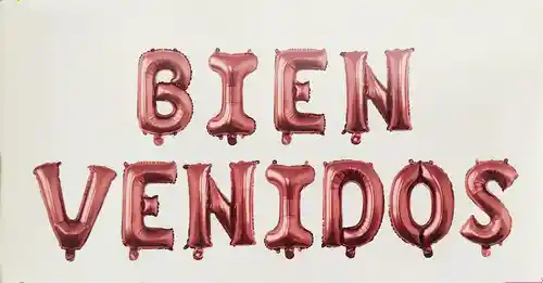 Globos letras Bienvenidos Color Oro Rosa Letras de 45 cm de alto disponiblidad inmediata
