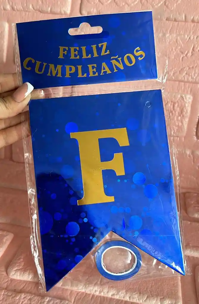 LETRERO FELIZ CUMPLEAÑOS AZUL OSCURO BOLAS BANDERIN FELIZ CUMPLEAÑOS COD.2079