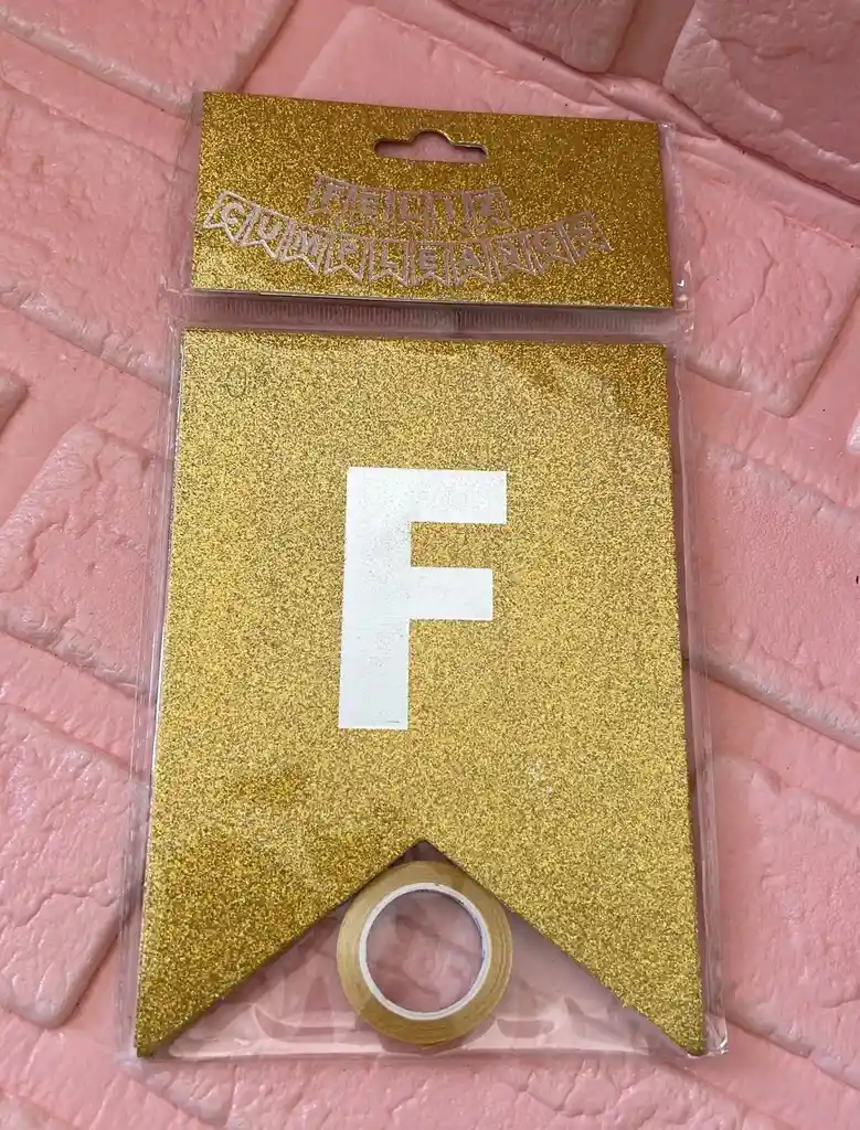 LETRERO FELIZ CUMPLEAÑOS DORADO ESCARCHADO BANDERIN FELIZ CUMPLEAÑOS COD.1861