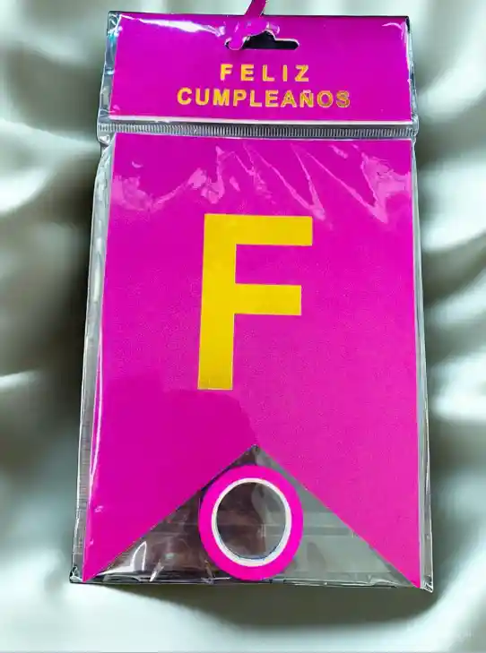 LETRERO FELIZ CUMPLEAÑOS ESCARCHADO TIPO BANDERIN COLOR FUCSIA