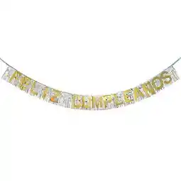 Letrero feliz cumpleaños de flecos plateados con letras doradas banderines o girnaldas mide 3 metros