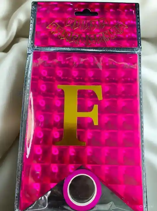 LETRERO FELIZ CUMPLEAÑOS HOLOGRAFICO TIPO BANDERIN COLOR FUCSIA