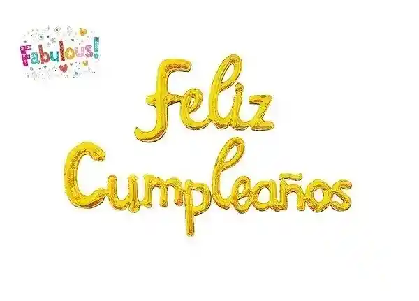 LETRERO FELIZ CUMPLEAÑOS INFLABLE DORADO CURSIVA. SE ENVIA DESINFLADO