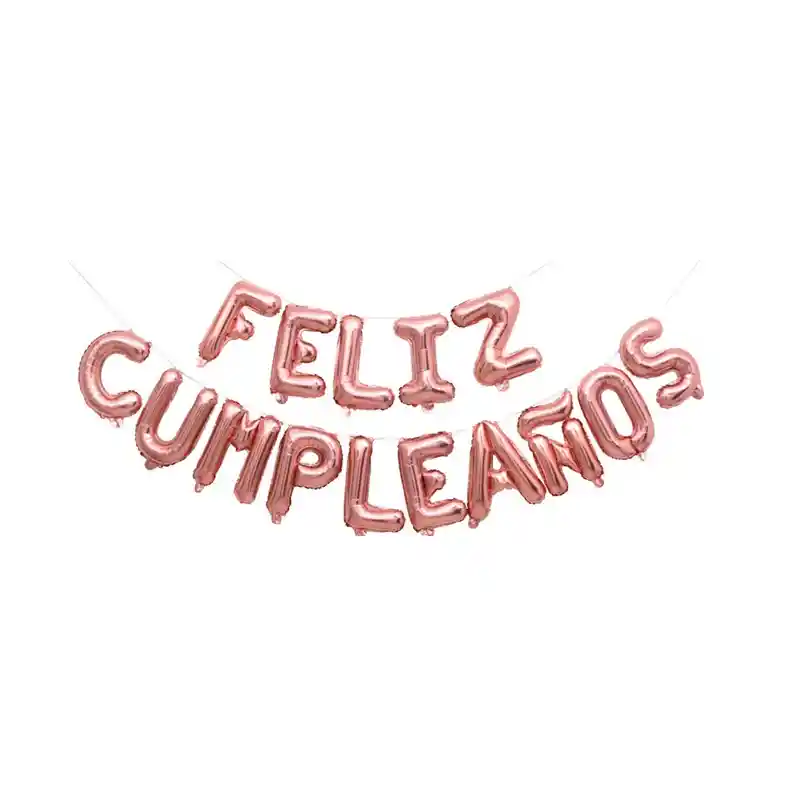 LETRERO FELIZ CUMPLEAÑOS INFLABLE LETRA A LETRA ORO ROSA SE ENVIA DESINFLADO