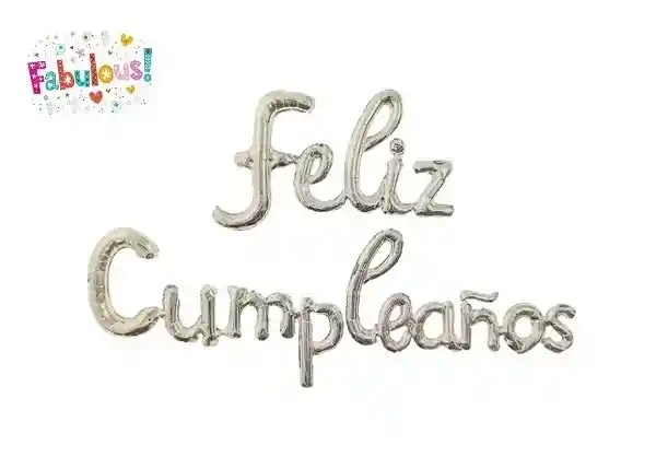 LETRERO FELIZ CUMPLEAÑOS INFLABLE PLATEADO CURSIVO. SE ENVIA DESINFLADO