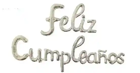 LETRERO FELIZ CUMPLEAÑOS INFLABLE PLATEADO CURSIVO. SE ENVIA DESINFLADO