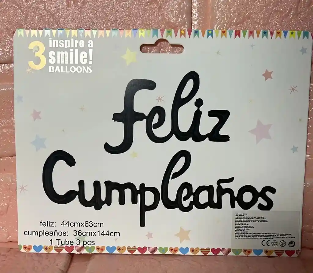 LETRERO FELIZ CUMPLEAÑOS NEGRO INFLABLE LETRA CURSIVA MEDIDAS FELIZ 44 cm X 63 cm CUMPLEAÑOS 36cm X 144cm COD.1761