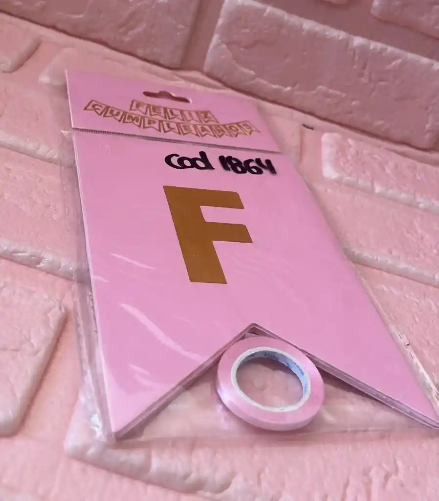 LETRERO FELIZ CUMPLEAÑOS ROSADO LISO BANDERIN FELIZ CUMPLEAÑOS COD.1864