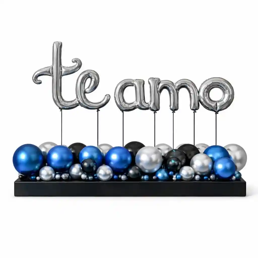 Celebra de manera brillante y elegante con este letrero de globo metalizado "te amo" en un vibrante color plateado. Perfecto para cualquier fiesta de cumpleaños, este globo tiene una dimensión imponente que resalta en cualquier decoración. Las medidas son: • te: 48cm * 49cm • amo: 77cm * 29cm Este letrero metálico es ideal para decorar tanto interiores como exteriores, creando un ambiente festivo lleno de alegría y luminosidad. TENER EN CUENTA: •Los globos vienen desinflados •Los Globos y porta globos de la decoración no vienen incluidos en la compra, es solo para recrear la imágen.