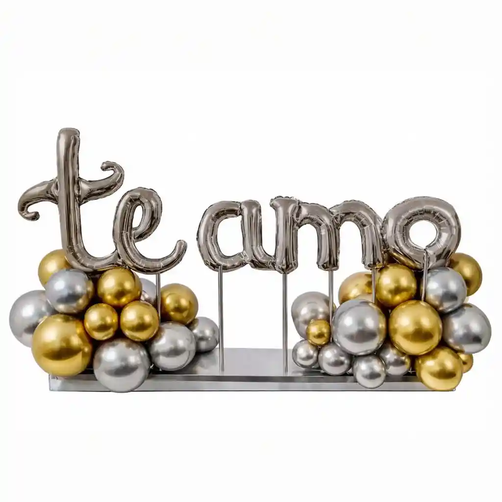 Celebra de manera brillante y elegante con este letrero de globo metalizado "te amo" en un vibrante color plateado. Perfecto para cualquier fiesta de cumpleaños, este globo tiene una dimensión imponente que resalta en cualquier decoración. Las medidas son: • te: 48cm * 49cm • amo: 77cm * 29cm Este letrero metálico es ideal para decorar tanto interiores como exteriores, creando un ambiente festivo lleno de alegría y luminosidad. TENER EN CUENTA: •Los globos vienen desinflados •Los Globos y porta globos de la decoración no vienen incluidos en la compra, es solo para recrear la imágen.