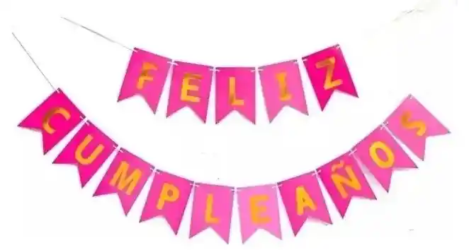 Banderin Feston Guirnalda Feliz Cumpleaños mate FUCSIA LETRAS DORADAS medidad: 2metros aproximadamente