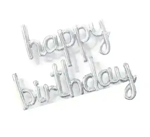 LETRERO HAPPY BIRTHDAY INFLABLE LETRA CURSIVA COLOR PLATEADO. MEDIDAS: HAPPY: 45 CM X 85 CM BIRTHDAY: 45 CM X 124 CM PARA INFLAR EL LETRERO PUEDES INCLUIR EN TU PEDIDO EL INFLADOR MANUAL DISPONIBLE EN NUIESTRA TIENDA.