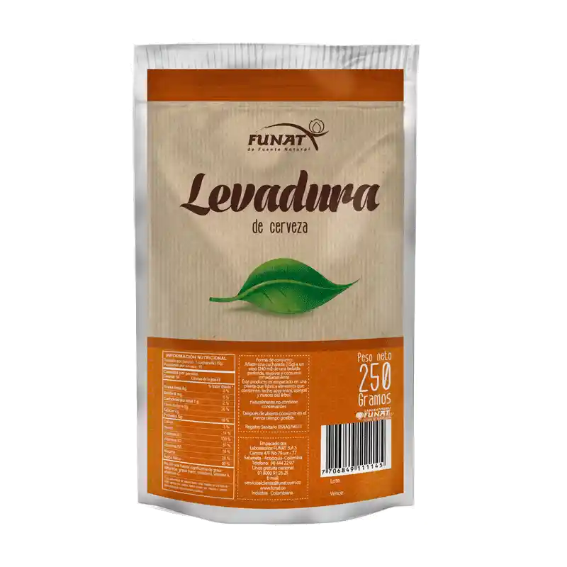 Levadura de Cerveza en Polvo x 250 Grs – Funat este alimento tiene cualidades nutritivas por su contenido de proteínas, vitaminas y minerales. Naturalmente no contiene conservantes. Modo de Uso: Adicione una cucharada (15 g.) a un vaso de una bebida preferida, revolver y consumir inmediatamente. Registro Invima: RSAA07I4511
