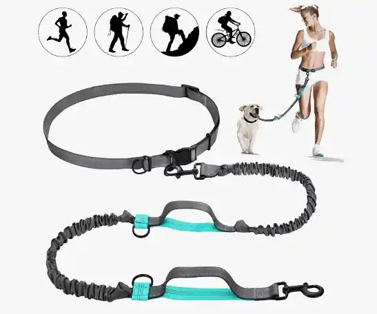 Traílla manos libres, para llevar en la cintura. Ideal para paseos y hacer deporte con tu mascota. Cuenta con amortiguador con 2 asas, en cada tramo con trailla flexible, perfecta para reducir el estrés y amortiguar tirones de tu mascota. Absorbe los cambios bruscos de dirección de tu perro. La longitud de la correa es de 120cm cuando el bungee está relajado y se puede extender hasta 150cm, proporcionando espacio suficiente para que tu mascota corra libremente junto a ti.
