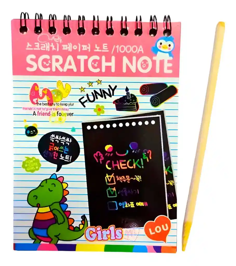 Da rienda suelta a tu creatividad de una forma completamente nueva y sorprendente con nuestro cuaderno de arte mágico para raspar. Cada página de este innovador bloc está cubierta por una superficie negra que esconde un espectacular fondo de arcoíris. Simplemente desliza el lápiz de madera incluido para raspar la capa superior y observa cómo tus dibujos, notas y diseños secretos cobran vida al instante con una explosión de colores vibrantes y llamativos. Es la herramienta perfecta para fomentar la imaginación en artistas de todas las edades, ofreciendo una experiencia de dibujo única, divertida y completamente libre de desorden. Ficha Técnica: Dimensiones : 27 cm x 19 cm Material: Hoja / Cartón Edad apta + 3 años Certificado de conformidad: SL-CS-210044 Referencia: JD1079 ** _Para defectos de fábrica o retractos: \_Por favor revise el producto apenas lo reciba y antes de usarlo. No aplican ley de retracto o defectos de fábrica luego de usar el producto. Se manejan máximo 5 días para reportar defectos de fábrica (por ejemplo, producto funciona mal, piezas faltantes, rotas, etc). Para hacer efectiva la devolución el producto debe devolverse con el empaque original, el cual debe estar en buen estado, incluir todos los documentos y las partes completas y sin daños.