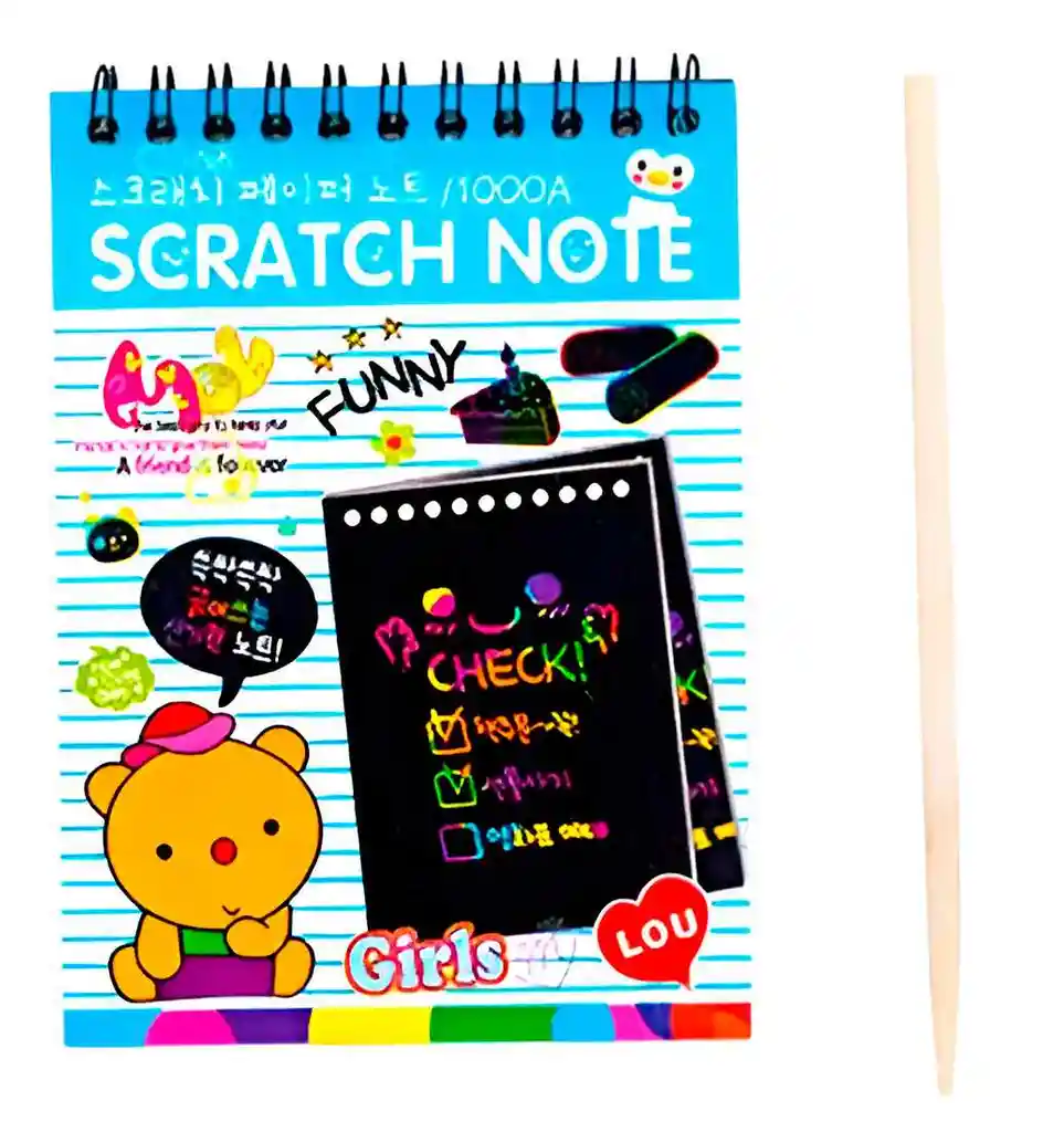 Da rienda suelta a tu creatividad de una forma completamente nueva y sorprendente con nuestro cuaderno de arte mágico para raspar. Cada página de este innovador bloc está cubierta por una superficie negra que esconde un espectacular fondo de arcoíris. Simplemente desliza el lápiz de madera incluido para raspar la capa superior y observa cómo tus dibujos, notas y diseños secretos cobran vida al instante con una explosión de colores vibrantes y llamativos. Es la herramienta perfecta para fomentar la imaginación en artistas de todas las edades, ofreciendo una experiencia de dibujo única, divertida y completamente libre de desorden. Ficha Técnica: Dimensiones : 27 cm x 19 cm Material: Hoja / Cartón Edad apta + 3 años Certificado de conformidad: SL-CS-210044 Referencia: JD1079 ** _Para defectos de fábrica o retractos: \_Por favor revise el producto apenas lo reciba y antes de usarlo. No aplican ley de retracto o defectos de fábrica luego de usar el producto. Se manejan máximo 5 días para reportar defectos de fábrica (por ejemplo, producto funciona mal, piezas faltantes, rotas, etc). Para hacer efectiva la devolución el producto debe devolverse con el empaque original, el cual debe estar en buen estado, incluir todos los documentos y las partes completas y sin daños.