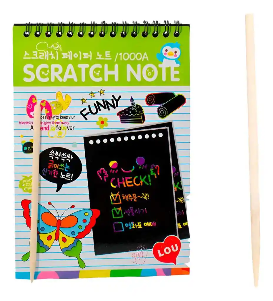 Da rienda suelta a tu creatividad de una forma completamente nueva y sorprendente con nuestro cuaderno de arte mágico para raspar. Cada página de este innovador bloc está cubierta por una superficie negra que esconde un espectacular fondo de arcoíris. Simplemente desliza el lápiz de madera incluido para raspar la capa superior y observa cómo tus dibujos, notas y diseños secretos cobran vida al instante con una explosión de colores vibrantes y llamativos. Es la herramienta perfecta para fomentar la imaginación en artistas de todas las edades, ofreciendo una experiencia de dibujo única, divertida y completamente libre de desorden. Ficha Técnica: Dimensiones : 27 cm x 19 cm Material: Hoja / Cartón Edad apta + 3 años Certificado de conformidad: SL-CS-210044 Referencia: JD1079 ** _Para defectos de fábrica o retractos: \_Por favor revise el producto apenas lo reciba y antes de usarlo. No aplican ley de retracto o defectos de fábrica luego de usar el producto. Se manejan máximo 5 días para reportar defectos de fábrica (por ejemplo, producto funciona mal, piezas faltantes, rotas, etc). Para hacer efectiva la devolución el producto debe devolverse con el empaque original, el cual debe estar en buen estado, incluir todos los documentos y las partes completas y sin daños.