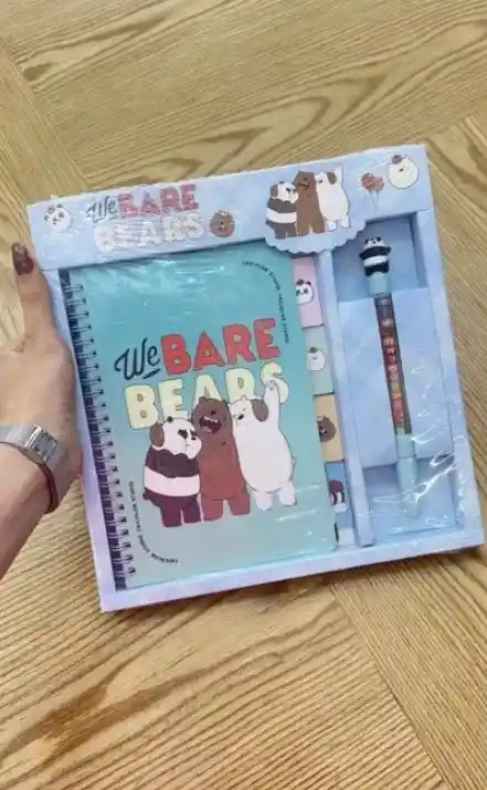 📒✨ Libreta con Lapicero Escandalosos 🐻🐼🐻❄️💖 ¡Apunta tus ideas con mucha diversión! Esta Libreta con Lapicero de Escandalosos es perfecta para el colegio, notas diarias o como regalo especial 🌈✍️. 📝 Diseño de los osos Escandalosos (Grizz, Panda y Polar) ✍️ Incluye lapicero a juego 🎒 Práctica y liviana, ideal para llevar a todas partes 💖 Un combo tierno y funcional que encantará a niños y niñas.