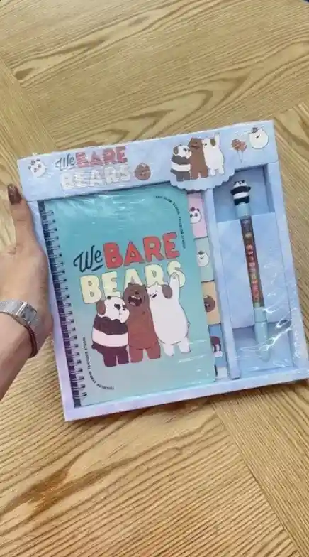 📒✨ Libreta con Lapicero Escandalosos 🐻🐼🐻❄️💖 ¡Apunta tus ideas con mucha diversión! Esta Libreta con Lapicero de Escandalosos es perfecta para el colegio, notas diarias o como regalo especial 🌈✍️. 📝 Diseño de los osos Escandalosos (Grizz, Panda y Polar) ✍️ Incluye lapicero a juego 🎒 Práctica y liviana, ideal para llevar a todas partes 💖 Un combo tierno y funcional que encantará a niños y niñas.