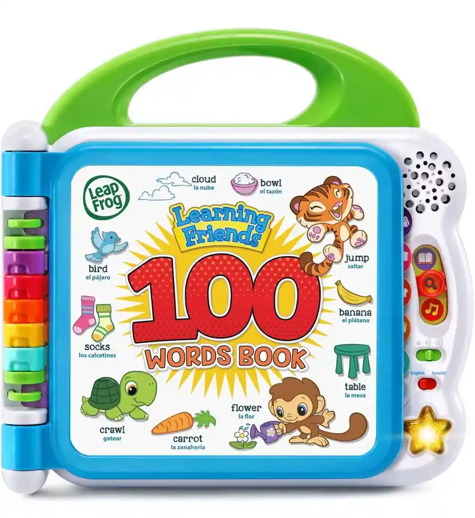 Libro bilingüe LeapFrog 100 Palabras diseñado para que los niños aprendan vocabulario básico en inglés y español de forma interactiva y divertida. Incluye ilustraciones llamativas y funciones de sonido que refuerzan el aprendizaje de manera auditiva y visual. Características principales: Contiene 100 palabras en inglés y español, organizadas por categorías temáticas. Ilustraciones coloridas que facilitan la asociación de imágenes con palabras. Función de sonido que pronuncia correctamente cada palabra al tocar la ilustración. Modo de juego para explorar, aprender y escuchar música. Volumen ajustable y apagado automático para ahorrar batería. Diseño resistente y seguro para el uso infantil. Beneficios de uso: Fomenta el aprendizaje temprano de dos idiomas. Desarrolla el vocabulario y la pronunciación correcta. Estimula la memoria, la atención y la curiosidad. Ideal para uso en casa o como apoyo escolar. Especificaciones técnicas: Marca: LeapFrog. Edad recomendada: desde 18 meses en adelante. Funciona con pilas (incluidas o según versión). Material: plástico resistente y seguro. Contenido del paquete: 1 libro bilingüe LeapFrog 100 Palabras. Recomendaciones de uso: Usar bajo supervisión de un adulto. Limpiar con paño seco o ligeramente húmedo. Evitar exponer a humedad o golpes fuertes para conservar su funcionamiento.