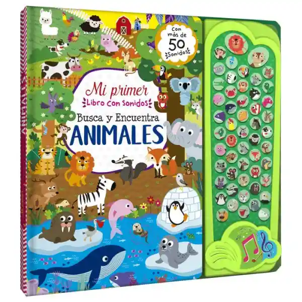 En libro con Sonidos, busca y encuentra Animales, los niños aprenderán mientras se divierten pulsando los botones y escuchando los sonidos. Además de divertidas imágenes para buscar y encontrar. Los pequeños mejorarán sus habilidades de observación y descubrirán el amplio y mágico mundo de los animales.