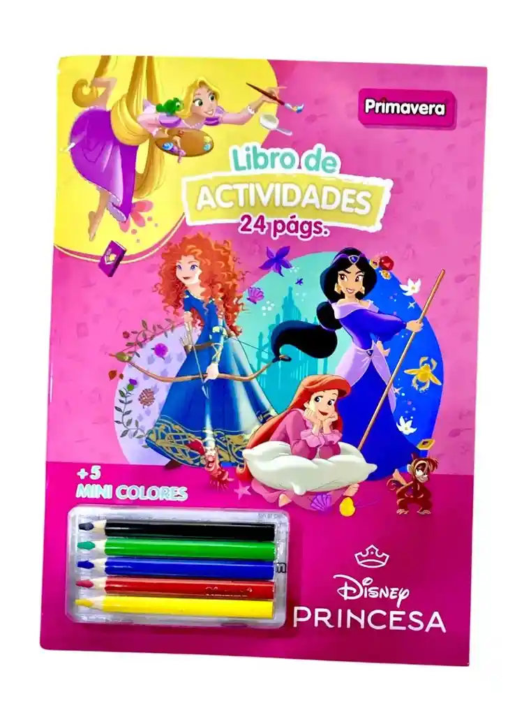 Diviertete y aprende con tus personajes favoritos con el Libro De Actividades Y Colorear 24 Paginas princesa Disney Primavera + 5 colores mini
