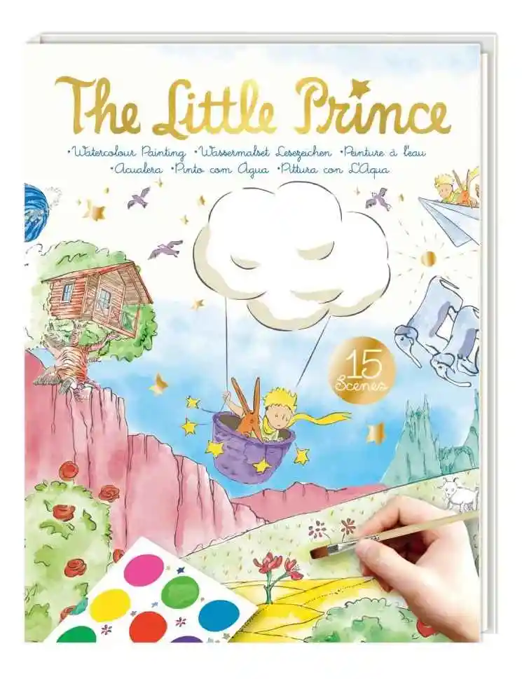 Empaque de regalo sin costo adicional, escríbenos al finalizar la compra. 3 años + Este libro de acuarela de El Principito invita a los niños a pintar de forma creativa y ordenada, usando solo agua y el pincel incluido. Contiene 15 ilustraciones del universo clásico de El Principito y 180 paletas de colores integradas, listas para mezclar y usar en cada página. Los colores se activan con agua y crean efectos suaves y llamativos que hacen que cada escena cobre vida. Es una actividad ideal para fortalecer la concentración, la creatividad y la motricidad fina sin ensuciar. Su formato práctico lo hace perfecto para usar en casa o llevar de viaje. Un libro pensado para pequeños artistas que disfrutan pintar, explorar colores y crear a su propio ritmo. Tamaño: 25x 27x 1cm
