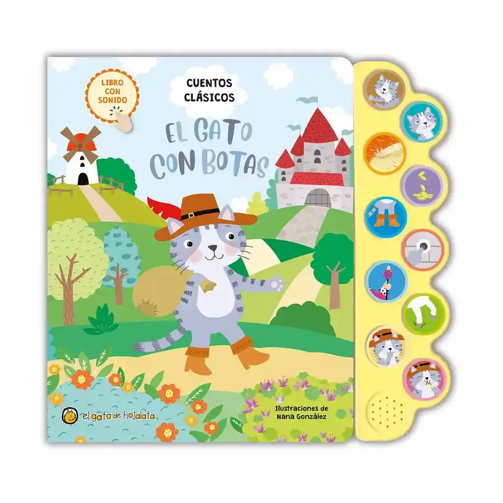 Empaque de regalo sin costo adicional, escríbenos al finalizar la compra. 2 años + Disfruta del ingenio del Gato con Botas en esta versión interactiva del cuento clásico. Cada botón activa sonidos que acompañan la historia, haciendo que los niños se involucren activamente mientras leen o escuchan. Con ilustraciones coloridas y adorables, este libro favorece el desarrollo del lenguaje, la memoria auditiva y la imaginación, convirtiendo la lectura en una experiencia divertida y multisensorial. Tamaño: 28x 27cm