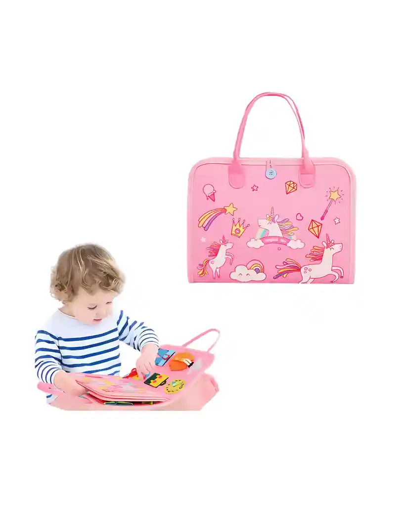 ¡Aprender nunca fue tan divertido! Ideal para estimular el desarrollo cognitivo y motor de los niños. Este libro interactivo estilo Montessori está diseñado especialmente para niñas y niños pequeños. Su presentación adorable con unicornios, castillos y colores pastel lo convierte en el favorito de los más pequeños. 🧠 ¿Qué contiene? 🧩 Juegos de encaje y asociación. 👕 Actividades de botones, cremalleras y lazos (motricidad fina). 🎨 Juegos de formas, colores, conteo y más. 📖 Páginas suaves tipo fieltro, acolchadas y seguras. ✨ Beneficios: Estimula la creatividad y la concentración. Refuerza la independencia y habilidades prácticas. Ideal para preescolar, estimulación temprana o terapia ocupacional. Portátil y liviano, perfecto para viajes.