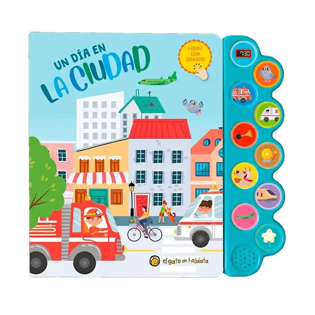 Empaque de regalo sin costo adicional, escríbenos al finalizar la compra. 2 años + Acompaña a los personajes en una jornada llena de movimiento con este libro interactivo. Cada página presenta una escena diferente de la ciudad, desde el paso del camión de bomberos hasta el vuelo de un avión, con botones que reproducen sonidos reales. Perfecto para estimular la curiosidad, el lenguaje y la escucha activa en niños pequeños. Su diseño resistente y colorido lo convierte en una herramienta ideal para aprender jugando y explorar los sonidos del entorno urbano. Tamaño: 28x 27cm