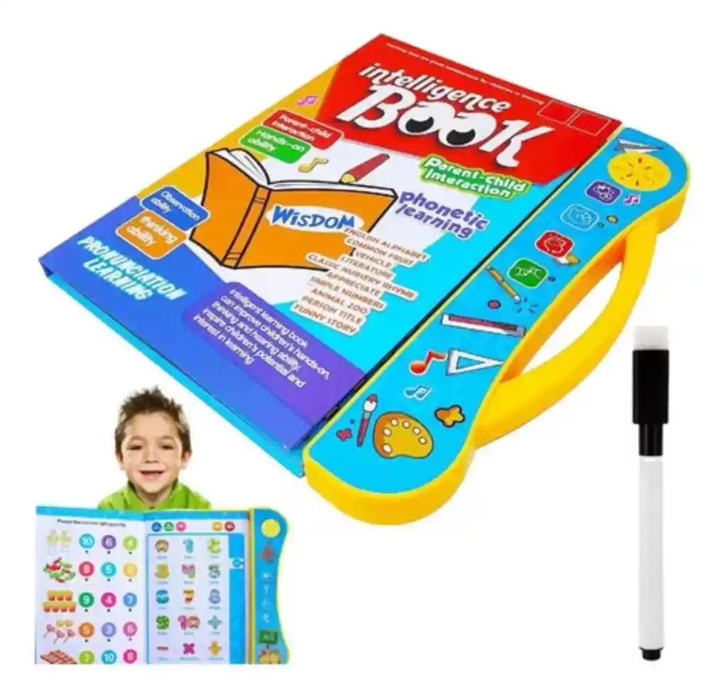 E-book interactivo, una herramienta táctil que va más allá de un simple libro. Ligero y fácil de transportar, este E-book no solo entretiene sino que también impulsa el desarrollo y el conocimiento de tu hijo/a. Toque con el dedo: Al pulsar los dibujos, el libro le dirá los números y cómo se pronuncian en ingles. Juegos interactivos dentro de las páginas permiten a los niños practicar habilidades de observación en la vida cotidiana, aprender el abecedario, números y animales en ingles, y desarrollar habilidades matemáticas básicas de suma y resta. Aprendizaje interactivo: Fomenta la interacción entre padres e hijos, enseñando una variedad de palabras para jugar y promoviendo el desarrollo del pensamiento lógico. Resistente al agua: Fabricado con material de alta calidad, se puede limpiar fácilmente con un paño húmedo y una toalla de papel. Resistente y duradero para un uso prolongado Caracteristicas: Dimensiones: 25 cm x 22 cm. Edad recomendada: +3 años. Material: Plástico libre de BPA no tóxico - Cartón. Alimentación: 3 Baterías AA (No incluidas). Idioma: Ingles El paquete Incluye: 1* Libro