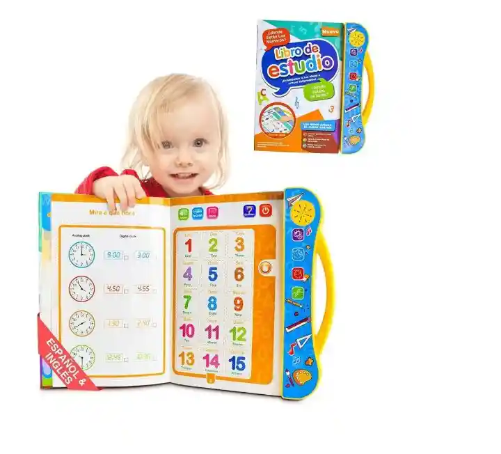 LIBRO DE VOZ EN INGLÉS Y ESPAÑOL EDUCACIÓN TEMPRANA - Producto Importado de Excelente calidad, Entrega Inmediata y Envíos a Toda Colombia. - El Libro Tiene Diez (10) Hojas. - Dos (2) Hojas son en Español y el resto en Español/Ingles. - En el libro instalado varios pequeños juegos que permiten una mayor interacción - Para el aprendizaje de letras, mural de cuadros y palabras, con música maravillosa que acompaña a tu niño o niña durante toda la experiencia, control táctil. DISEÑO FINO, LIGERO Y ERGONÓMICO Con un peso de 310 gramos, 2 cm de espesor, se puede llevar fácilmente a cualquier sitio, el borde del libro es muy suave así que no rayará la mano del niño. APRENDIZAJE BILINGÜE En el libro se puede elegir la lengua de utilización entre Español e Inglés. FUNCIONES MÚLTIPLES El libro de aprendizaje presenta la función de música/sonido, reflexión táctil, flash, que es electrónico. CARACTERISTICAS: Cada pagina tiene un botón de inicio , haz clic en el botón y comienza. Medidas: 25.5x23cm Incluye: Plumón Fuente de Alimentación: 3 Baterías AA (NO incluidas). Idiomas: Ingles y Español